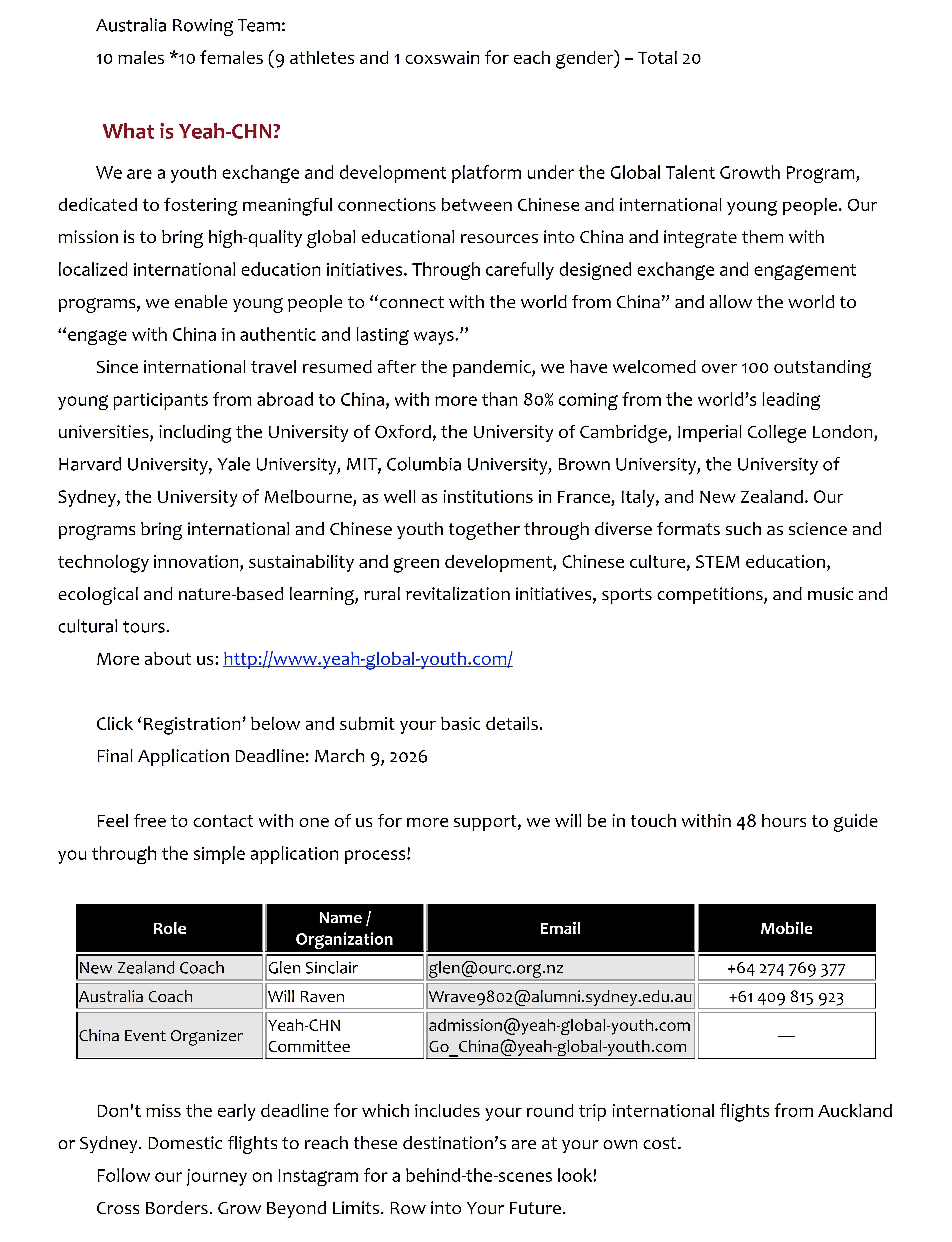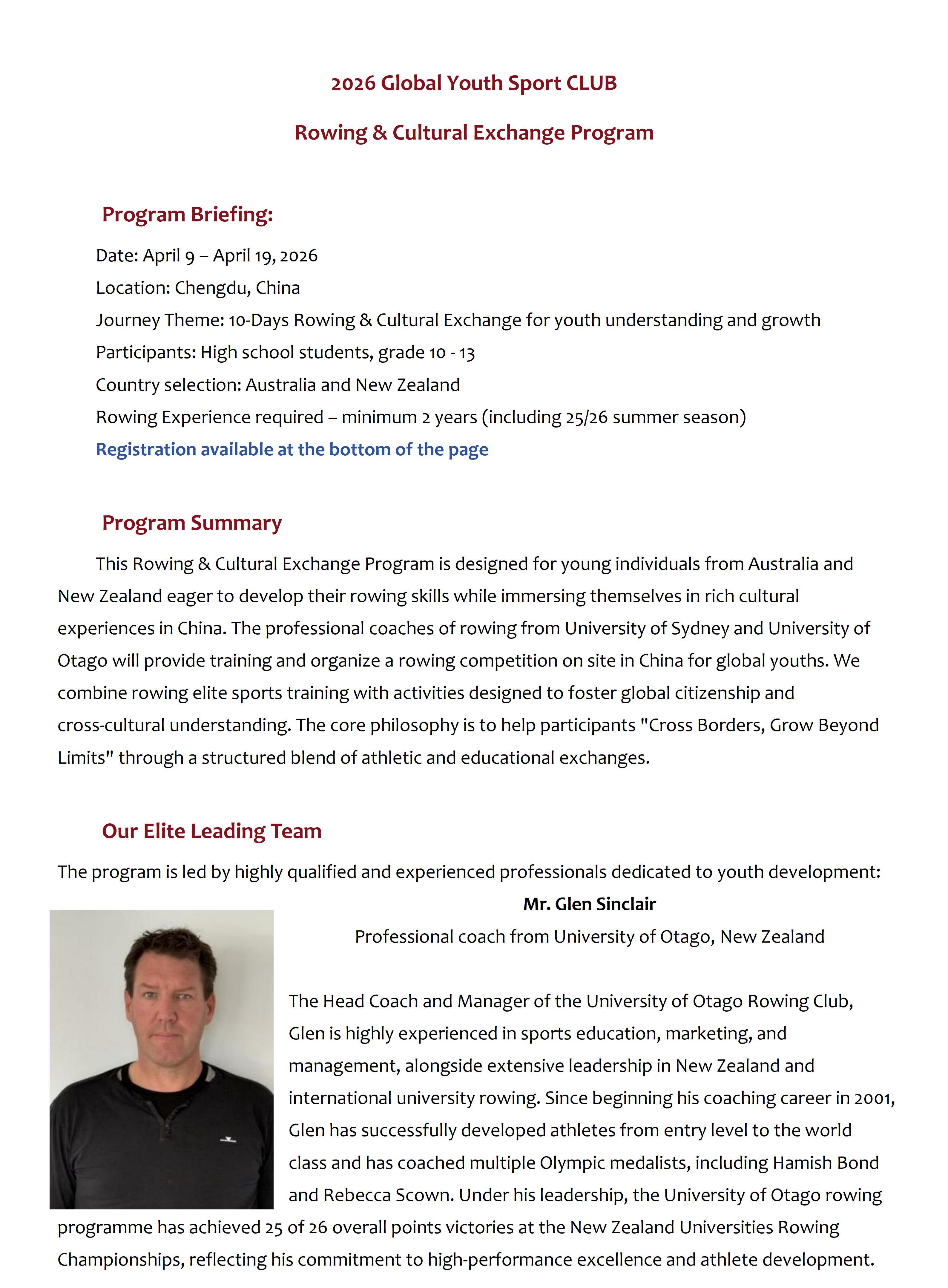 Sign-up Available! 2026 Global Youth Rowing Exchange Tournament